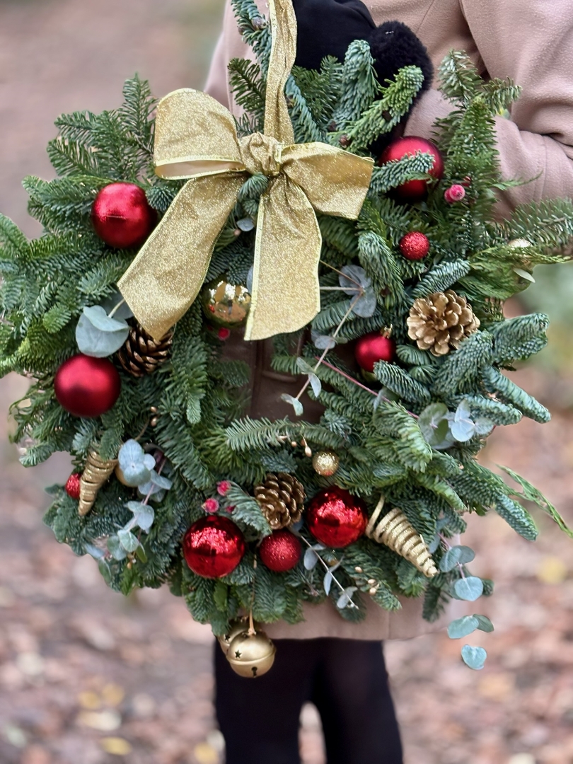 Perfect for adding a warm welcome to your front door or as a show-stopping indoor decoration, this wreath captures the true spirit of Christmas — timeless, elegant, and full of cheer.