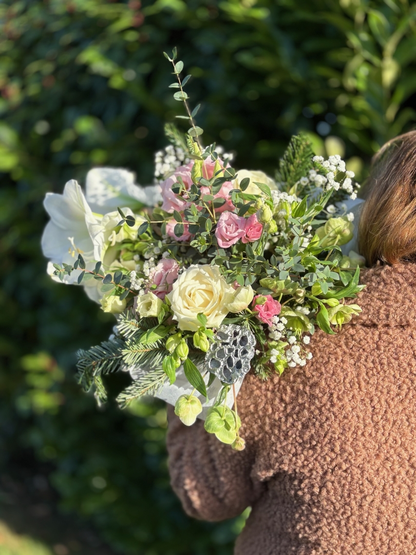 Please note: As we work with seasonal flowers and our suppliers availability, the exact blooms may vary - however the colour palette and overall style will always reflect the spirit of Blush Noel